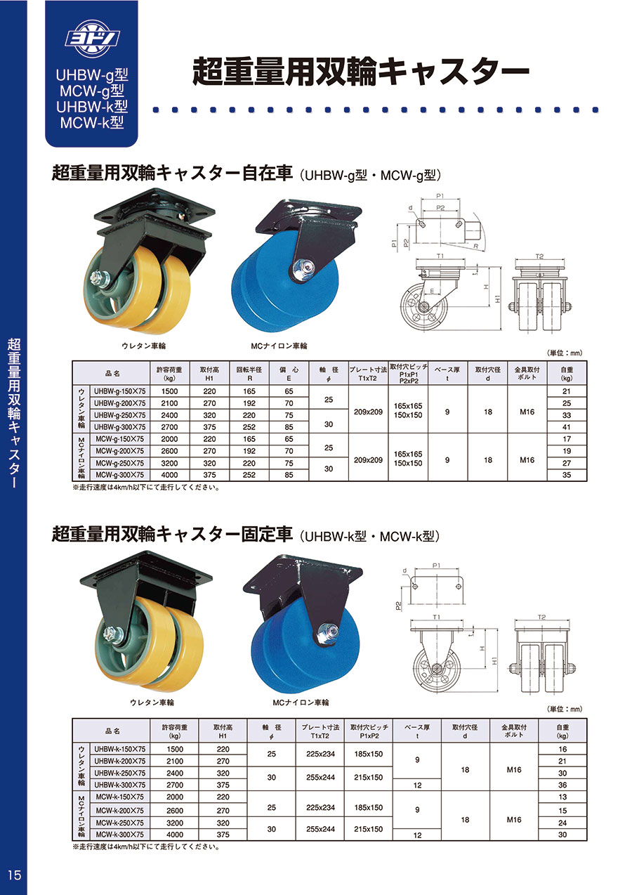 Loại sản phẩm: Bánh xe Bánh xe định hai bánh dành cho tải siêu nặng (Loại UHBW-k/Loại MCW-k) Số bộ phận