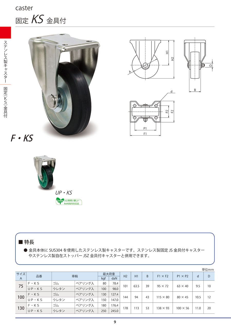 Loại sản phẩm: Bánh xe bằng thép không gỉ, đã gắn, Bao gồm các phụ kiện bằng kim loại KS, Số bộ phận UP/KS