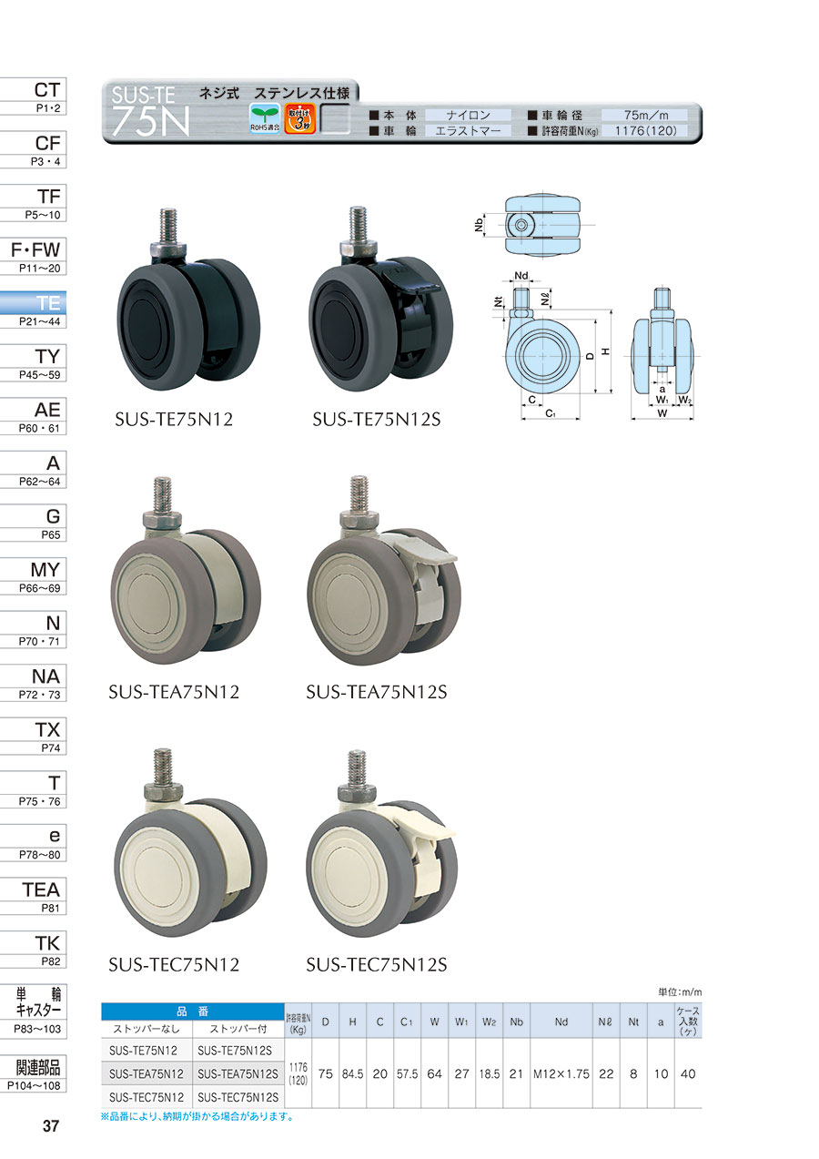 Loại sản phẩm: Bánh xe hai Bánh xe, Mã sản phẩm SUS-TE75N