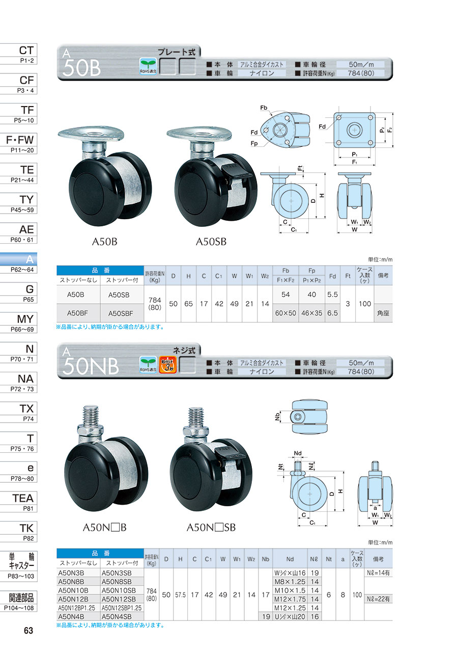 Loại sản phẩm: Bánh xe Bánh xe A50NB Số bộ phận
