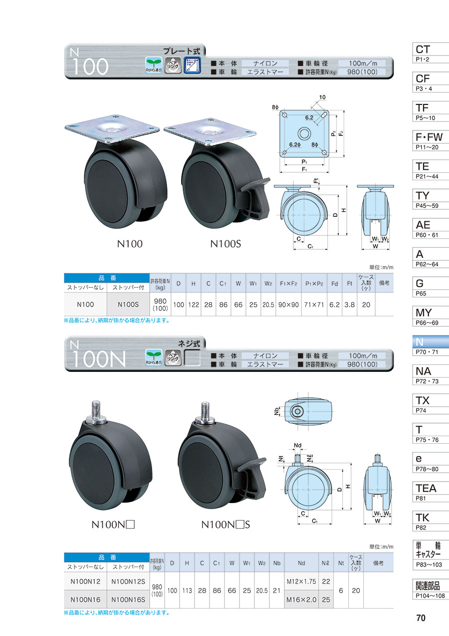 Loại sản phẩm: Bánh xe Bánh xe N100 Mã sản phẩm
