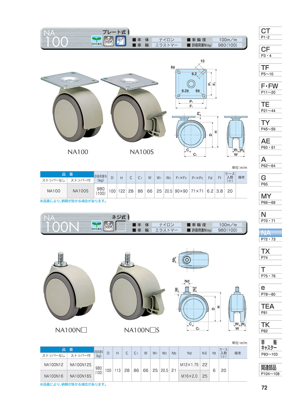 Bánh Xe Xe Hai Bánh , NA100 - TOKAI CASTER