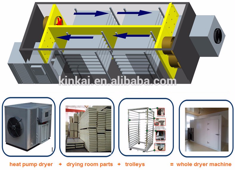 KINKAI bơm Nhiệt khay máy sấy loại trái cây dehydratorMất tận dụng lợi thế của đảo ngược Carnot nguyên tắc, hấp thụ nhiệt từ xung quanh và gửi các nhiệt để các vật liệu mà sẽ được sấy khô.